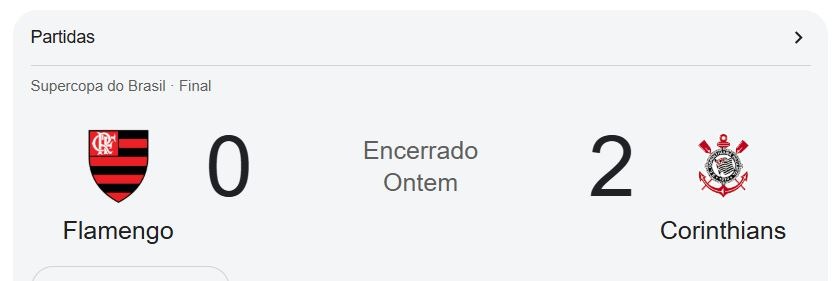 O Corinthians sagrou-se supercampeão do Brasil neste domingo (1º/2). O Timão venceu o Flamengo por 2 a 0 na Arena BRB Mané Garrincha e conquistou o título da Supercopa Rei. Os gols da partida foram marcados por Gabriel Paulista, aos 26 minutos do primeiro tempo, e por Yuri Alberto, no último lance do confronto.